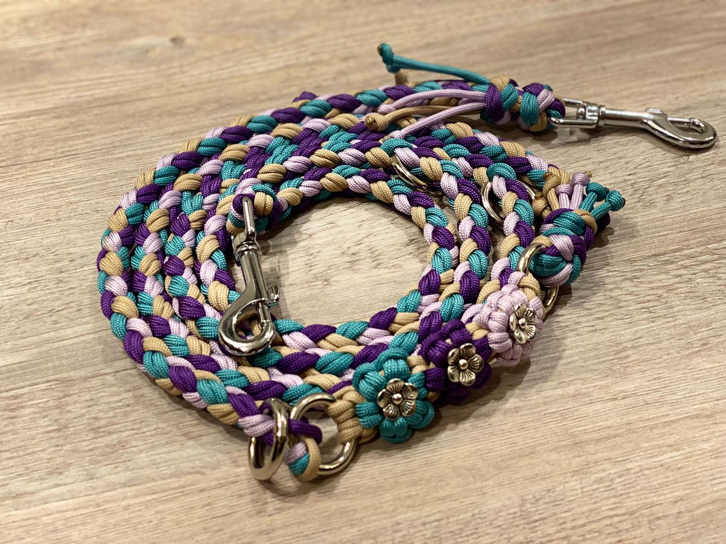 Hundeleine aus Paracord, 4 Stränge geflochten mit Blumen